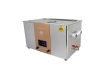 通過換能器,將功率超聲頻源的聲能轉換成機械振動,通過清洗槽壁將超聲波輻射到槽子中的清洗液。由于受到超聲波的輻射,槽內液體中的微氣泡能夠在聲波的作用下快速變大破裂,破裂時產生的高強度剪切力作用于各類樣品上,從而達到清洗、提取、乳化、加速溶解、粉碎、分散等作用。